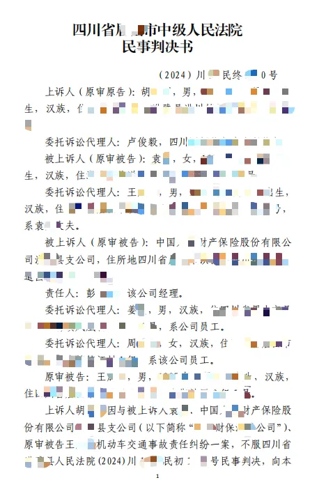 三、变更四川省xx县人民法院(2024)川 xxxx 民初xxxx 号民事判决第一项为“中国xx财产保险股份有限公司xx县支公司在本判决生效之日起十五日内赔偿原告胡某某各项损失合计534,331.71元”;